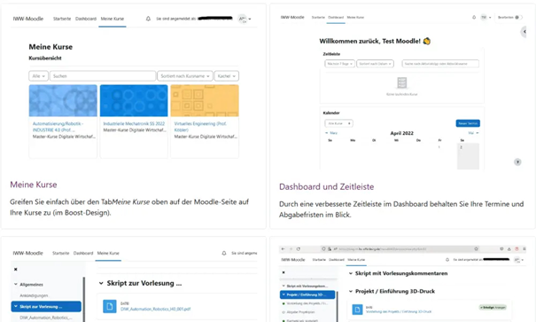 Moodle bietet eine Vielzahl an digitalen Lern- und Kommunikationsmöglichkeiten. Das Angebot umfasst z. B.: